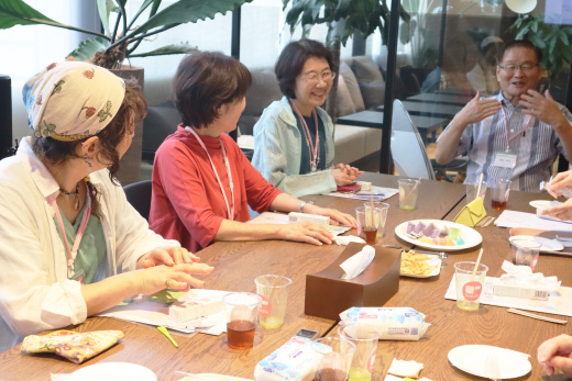 「まるごとさんかく茶」や新商品のお菓子等を味わいながら、盛り上がりました!