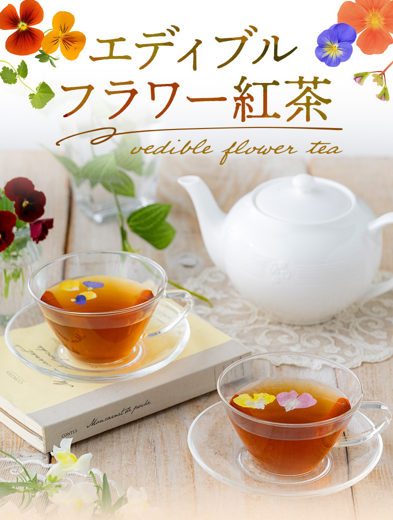 - 紅茶(インド)、いちご、ローズレッドペタル、食用花(ビオラ)/香料