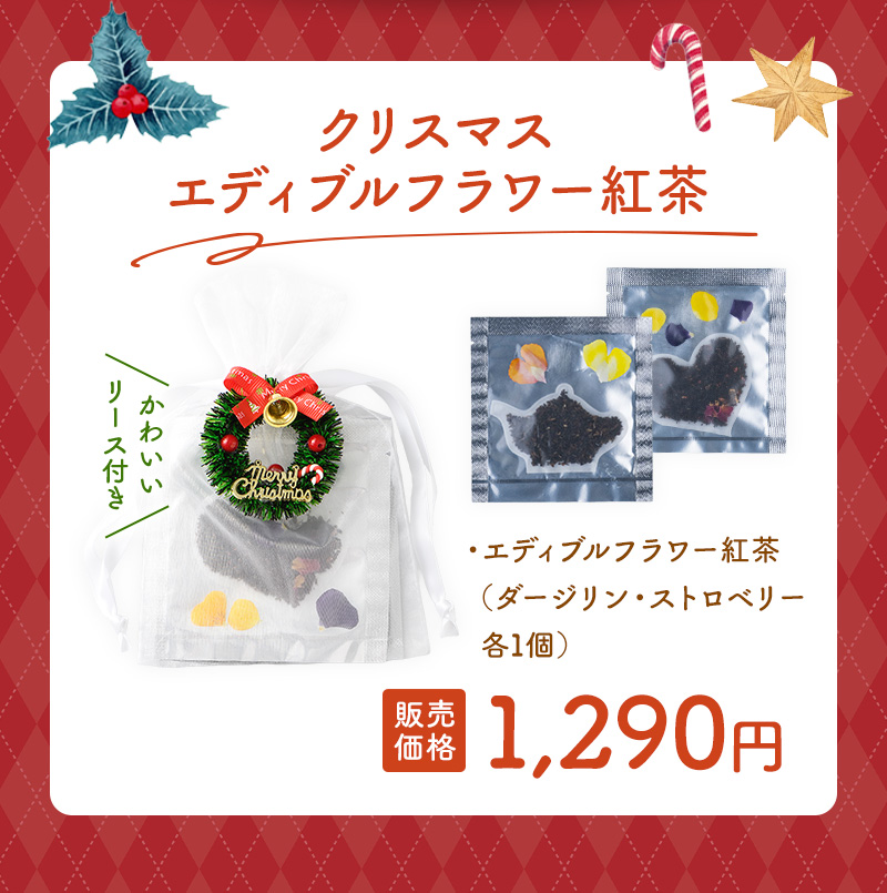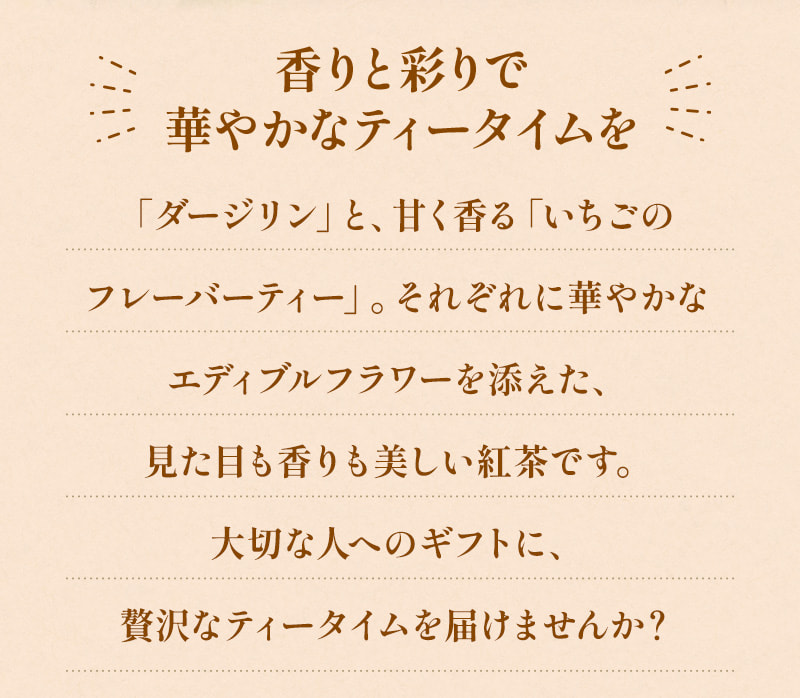 - エディブルフラワー紅茶2g×2個(ダージリン、ストロベリー×各1個)