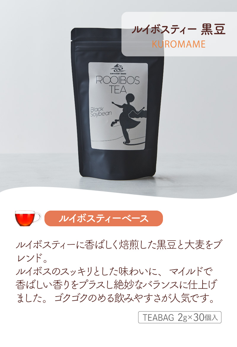 - 黒豆(大豆)(アメリカ)、大麦(カナダ)、ルイボス(南アフリカ共和国)
