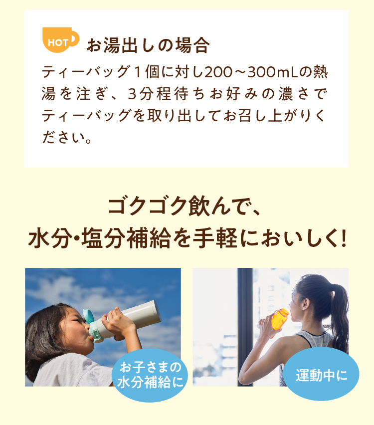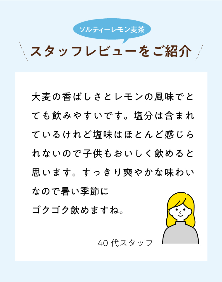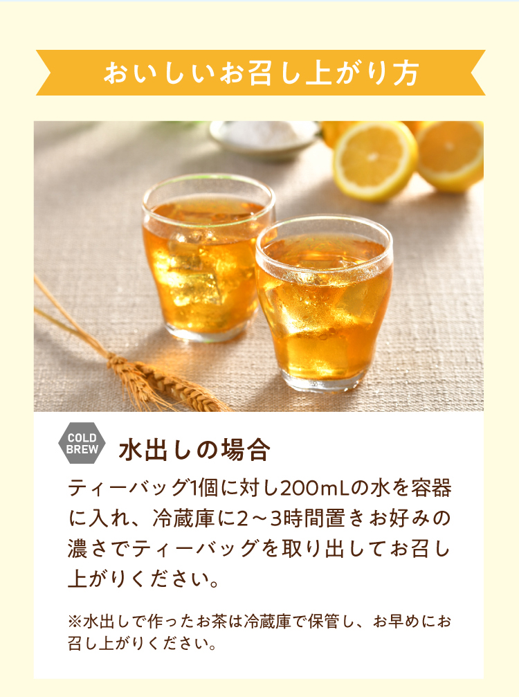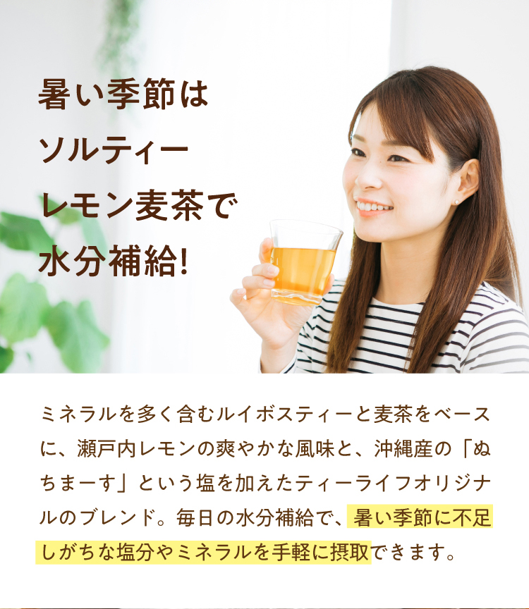 - 大麦(カナダ)、ルイボス(南アフリカ共和国)、レモン(国産)、塩(国産[ぬちまーす])