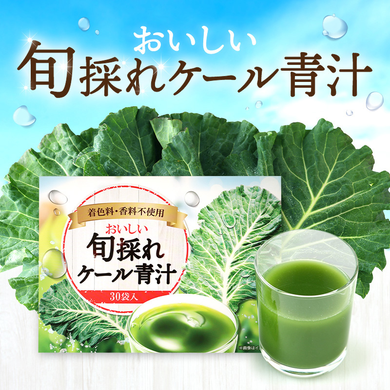- ケール末(国内製造)、抹茶、緑茶末、アガベイヌリン(水溶性食物繊維)、イソマルトデキストリン(水溶性食物繊維)、イヌリン(水溶性食物繊維)、デキストリン、ポリデキストロース(水溶性食物繊維)、還元麦芽糖、難消化性デキストリン(水溶性食物繊維)、澱粉、麦芽糖、甘藷若葉末、アスパラガス末、かぼちゃ末、キャベツ末、コマツナ末、ブロッコリー末、ホウレンソウ末、スピルリナ末、ニンジン末、明日葉末、ニガウリ末、殺菌乳酸菌末、ゴボウ末、モロヘイヤ末/ビタミンC、ナイアシン、パントテン酸カルシウム、ビタミンA、ビタミンB6、ビタミンB1、ビタミンB2、酸化防止剤(ビタミンC)、葉酸、ビタミンD、ビタミンB12
