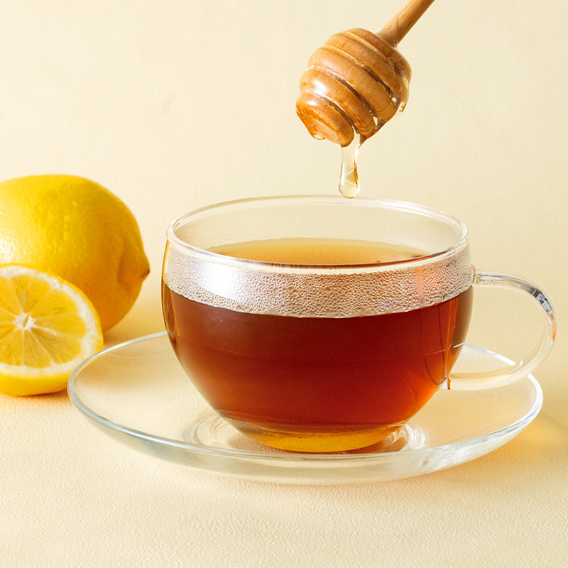 - プーアール茶(中国)、甜茶(中国)、紅茶(インド)、レモン(国産)、はちみつパウダー(はちみつ、デキストリン)(国内製造)/香料