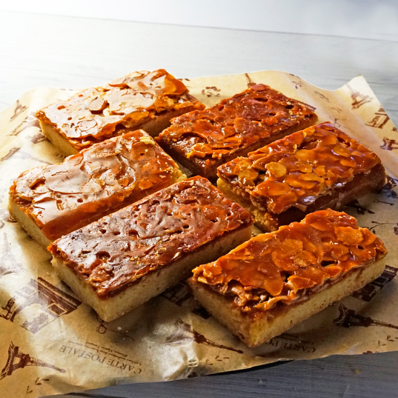 - 小麦粉(国内製造)、砂糖、マーガリン(乳成分・大豆を含む)、アーモンド、鶏卵、コ-ンスターチ、塩/香料、着色料(カロテン)
