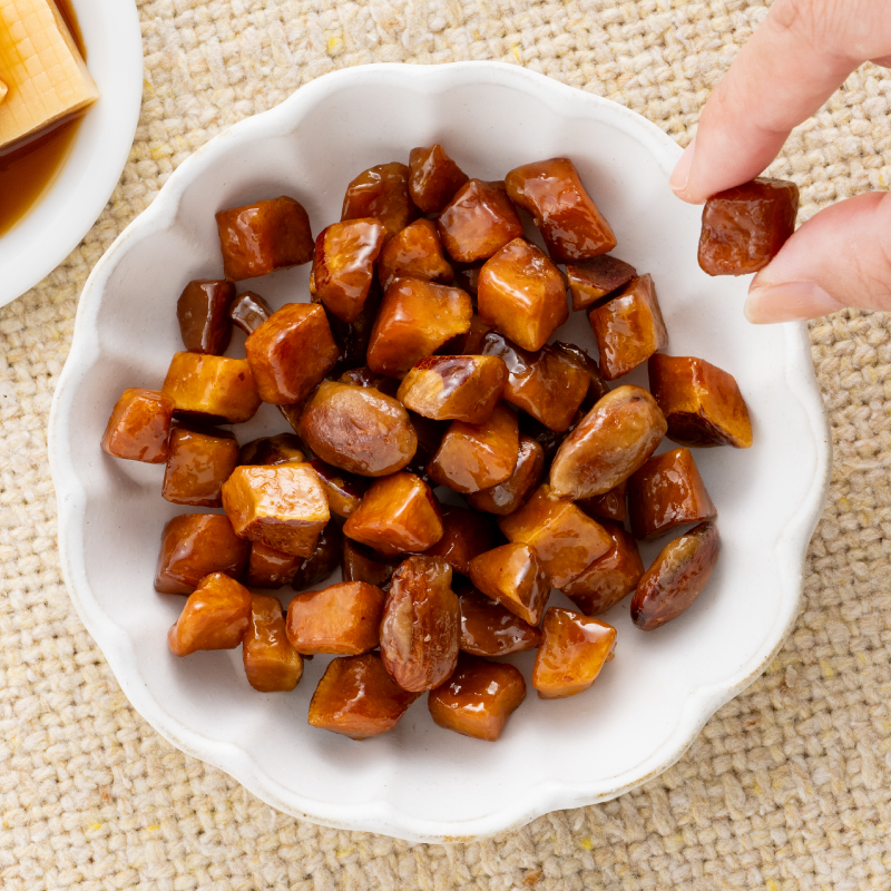 - さつまいも(九州産)、砂糖(さとうきび(国産))、食用植物油脂、アーモンド、バター、食塩/レシチン(大豆由来)