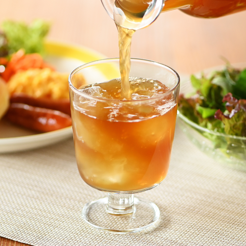 <水出し>ティーバッグ1個をポットに入れ、水を600mL注ぎ、1時間程おきティーバッグを10回程度上下に振ったあと取り出してから全量をお召し上がりください。