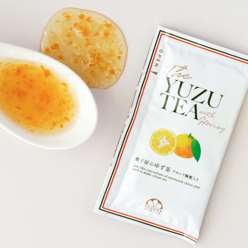 細かく刻んだゆず皮のほのかな苦味、蜂蜜のやさしい甘み、そしてゆず特有の爽やかな酸味がバランスよく溶け合った「甘すぎない大人のゆず茶」です。