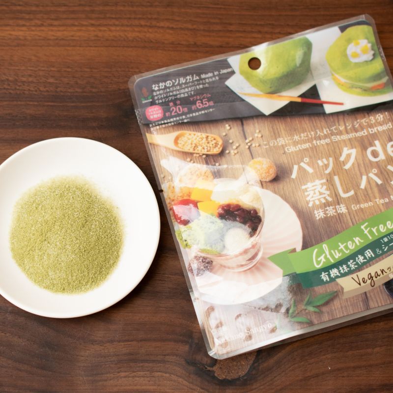希少な静岡県産の有機抹茶、国内製造のホワイトソルガム(白高きび)を使用した、グルテンフリーのふわもち抹茶蒸しパンミックス。