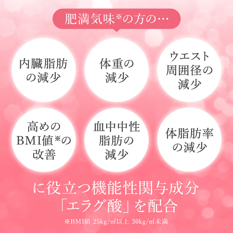 【試験項目】体重、体脂肪、内臓脂肪、ウエスト周囲径、ヒップ周囲径、BMI値、血中中性脂肪