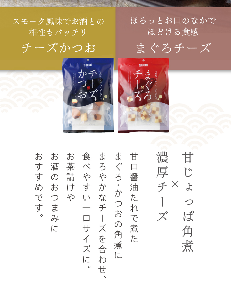 - かつお(国産)、乳等を主要原料とする食品(ナチュラルチーズ、還元水飴、ショートニング、ゼラチン)、砂糖、醤油、還元水飴、米発酵調味料、寒天/乳化剤