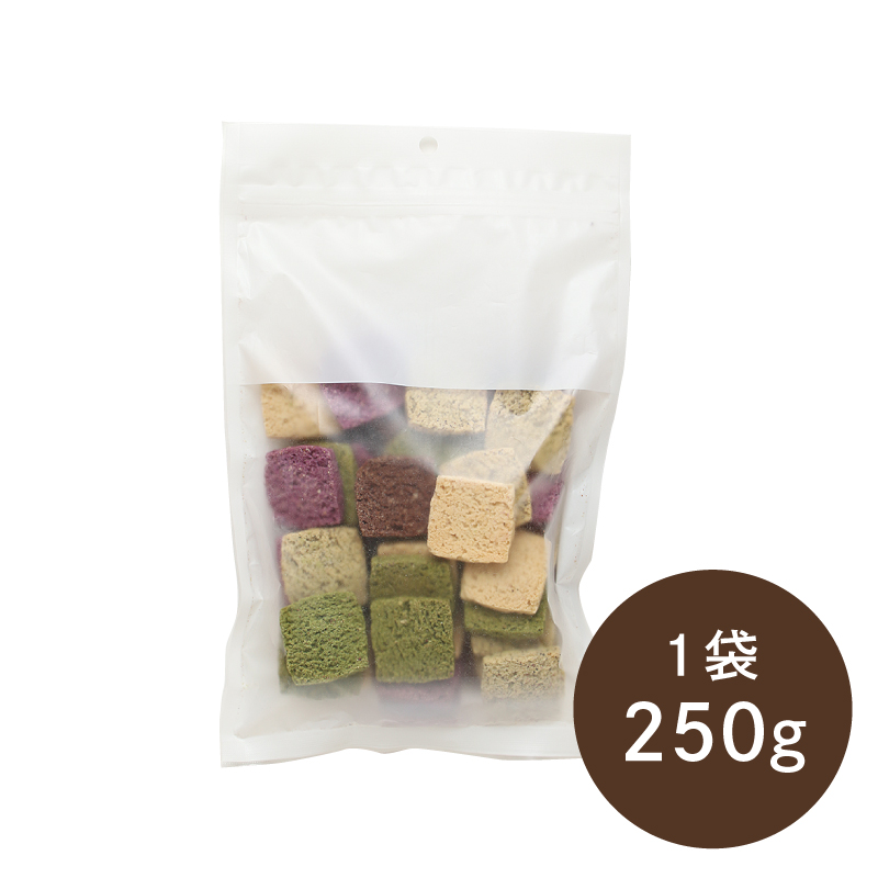 おから(国内製造)、小麦粉(小麦(国産))、アーモンドパウダー、豆乳、食用こめ油、砂糖(てんさい(国産))、各パウダー(紅茶、ココア、紫いも、ほうれん草)、塩/ベーキングパウダー