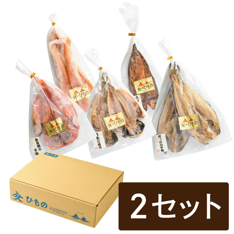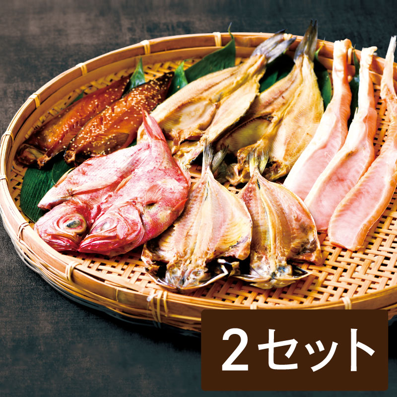 | 内容量 | (さばみりん干し×2枚、真あじ開き×2枚、真ほっけ開き×2枚、金目鯛開き×1枚、サーモンハラス×400g)×2セット |