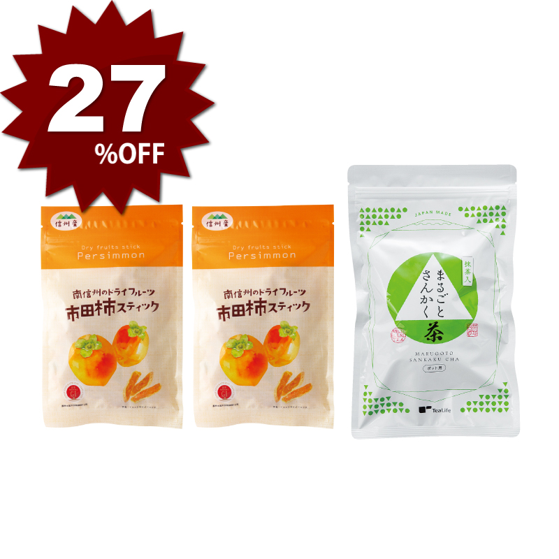 【WEB限定】市田柿スティック2袋+まるごとさんかく茶