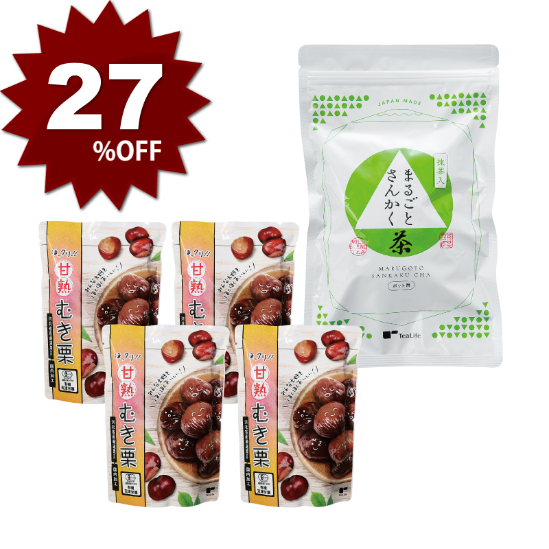 【WEB限定】ほっクリ!!甘熟むき栗4袋+まるごとさんかく茶