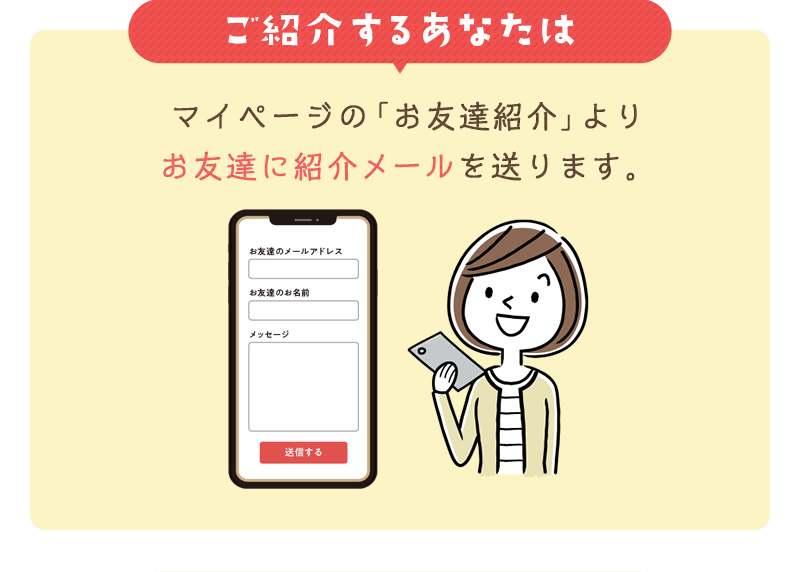 ※次の場合は、特典の対象になりません。 ご紹介者とお友達が同一世帯の場合 すでにご紹介いただいている方と同一世帯の方のご紹介 お友達が既にティーライフでお買物経験がある場合 ご紹介者のお取引状況によってはお断りする場合がございます。